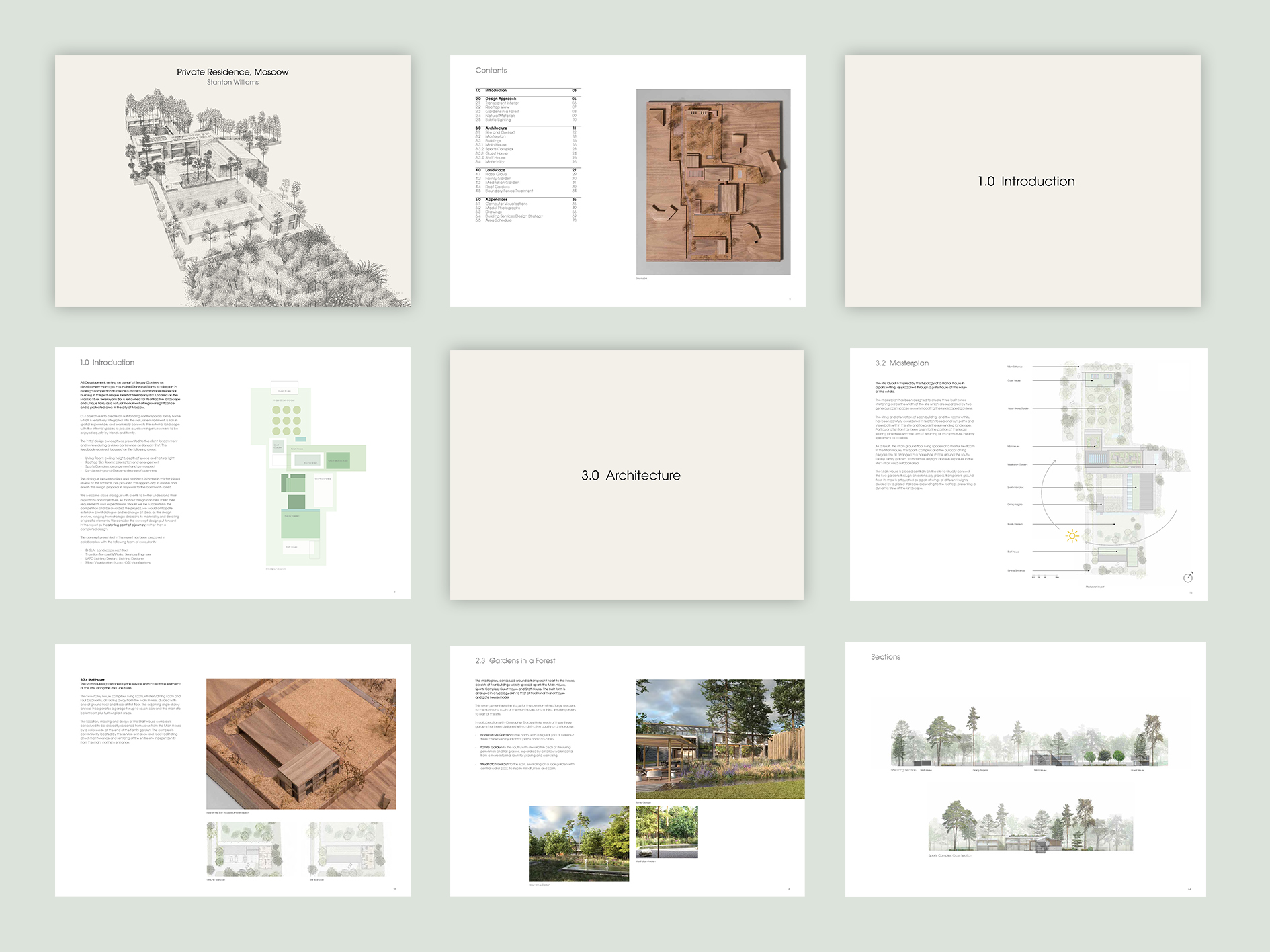 Design and production of a competition report for a private residential scheme. I built the template within brand guidelines, designed the layout and built additional assets.