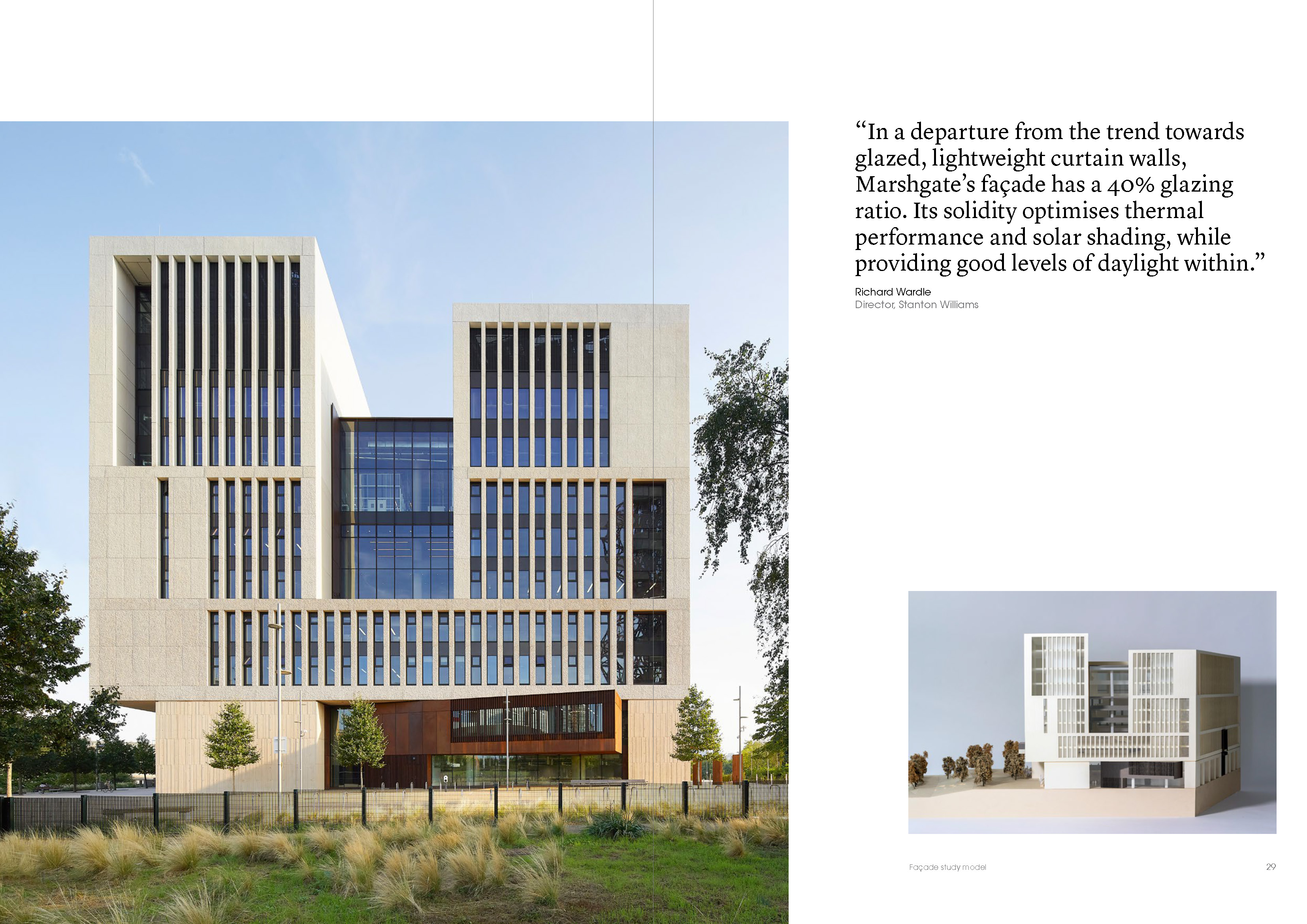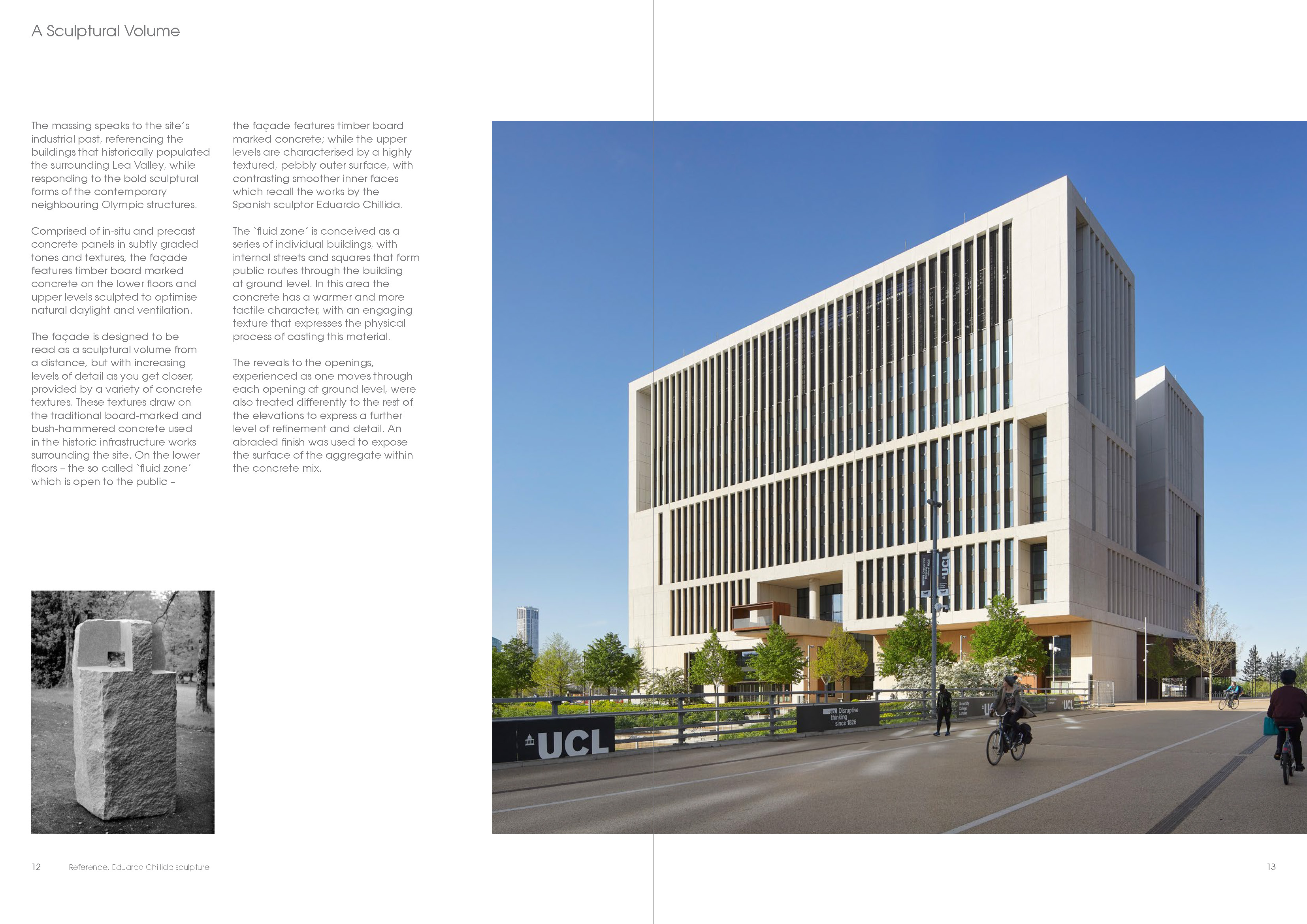 I designed and produced this brochure, in both digital and print, for the completion of the UCL East building in Marshgate, London. I produced a new template for their brochures in line with the company’s website redesign, which I was also heavily involved in. I accompanied a photographer to the building and art directed to capture specific elements of the building in line with the architect's brief. I also cleaned up all the sketches and drawings to bring clarity to the assets and an editorial style to the brochure