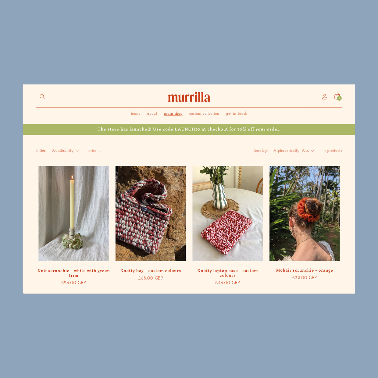 Website design for Murrilla Studio, a slow fashion brand I run making and selling one-off and custom crochet accessories. I also run the Instagram account @murrilla.studio, creating content and marketing campaigns.
